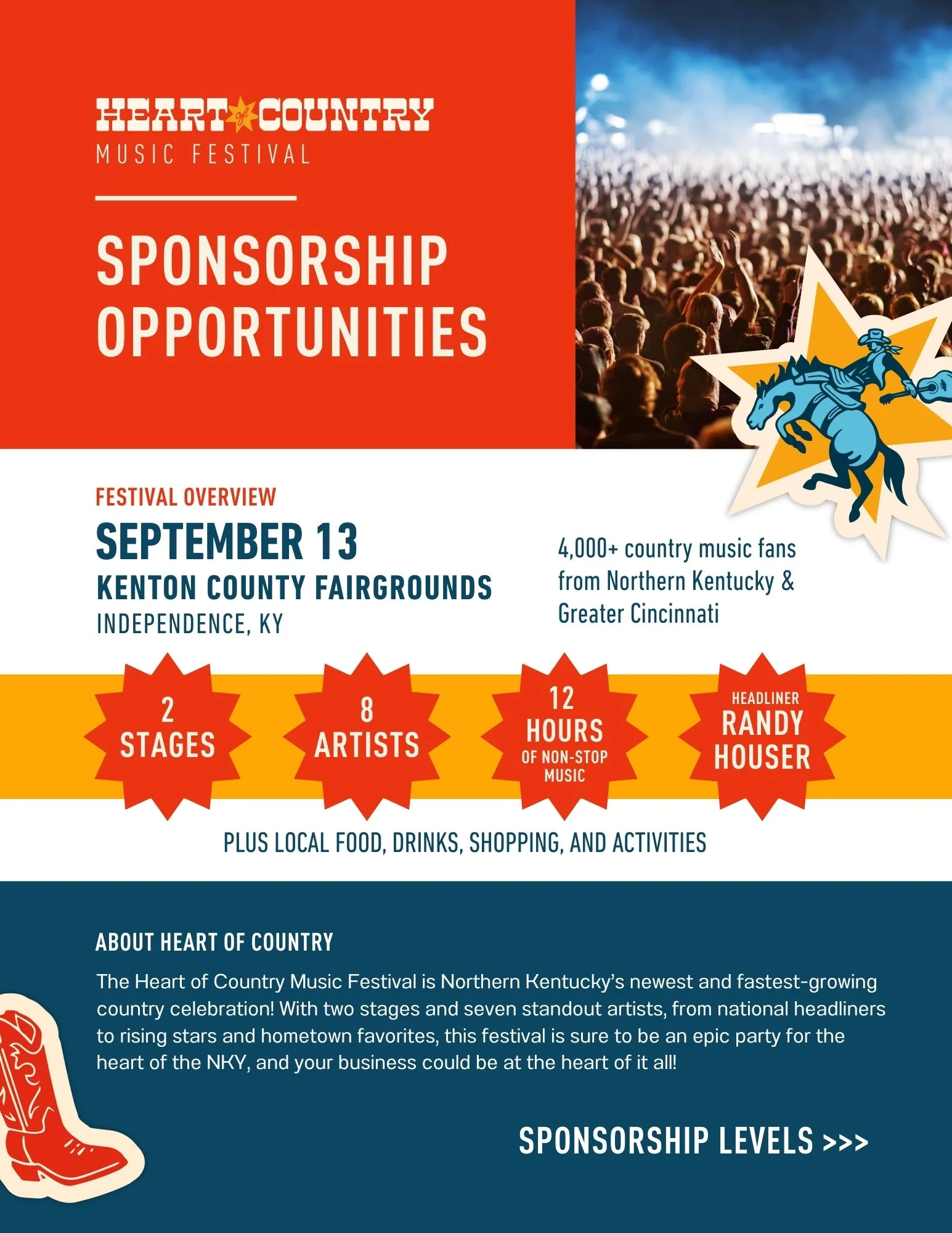 On Saturday, September 13, 2025 we’ll welcome 3,000+ fans to Independence, KY for a full day of live country music, food, festivities and family-friendly fun.